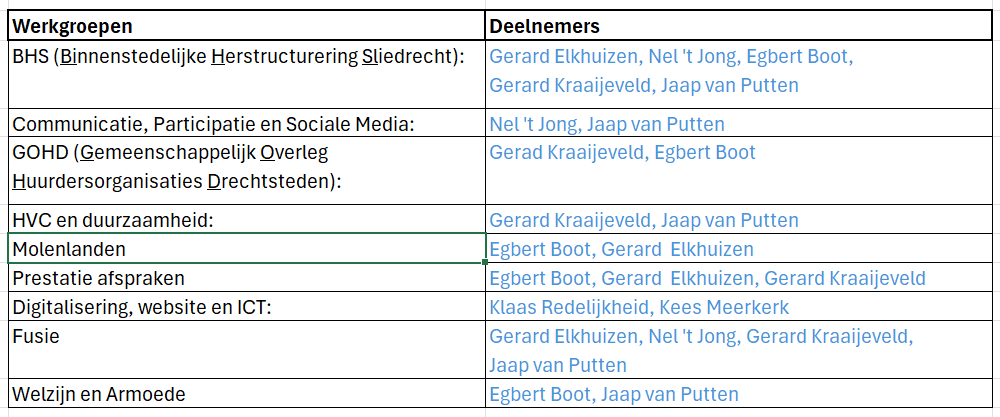 Één van de belangrijkste peilers van een goed werkend overleg tussen de verhuurder en de huurder is een opstelling met goede afspraken. Deze opstelling met afspraken is vastgelegd in de zogenaamde “samenwerkingsovereenkomst”. Tevens volgen de bestuursleden regelmatig bijeenkomsten, cursussen en voorlichtingsbijeenkomsten.